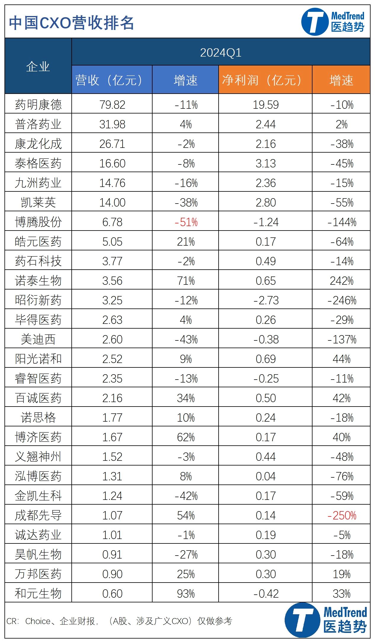 2024年,或许中国CXO们的业绩不会像过往那么亮眼。从第一季度来看,营收下滑的占比近60%,净利润更是几乎全员下降。主要原因或许还是创新药大环境仍处于调整期。